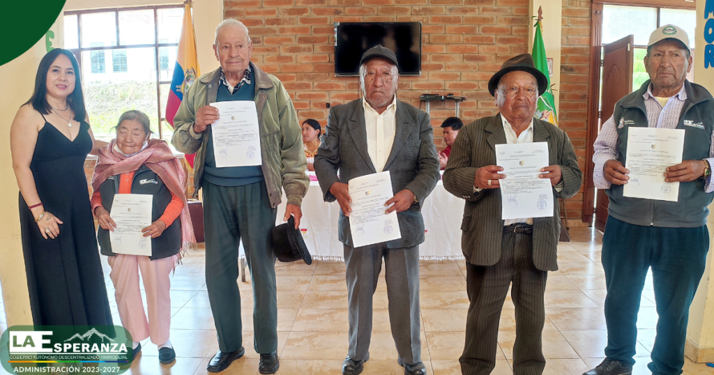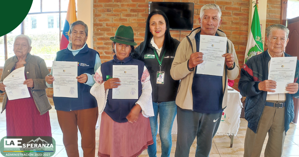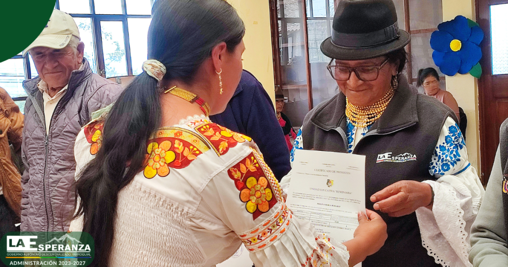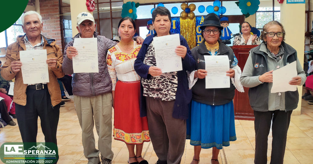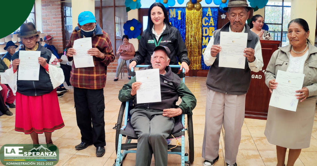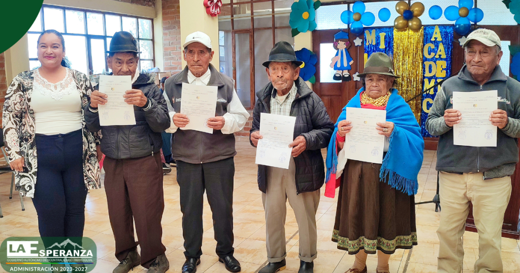 En el marco del trabajo interinstitucional entre el GAD Parroquial La Esperanza y la Unidad Educativa Rumipamba, se entregaron certificados de promoción a los usuarios del Centro Integral del Adulto Mayor, quienes culminaron de manera satisfactoria el segundo y tercer año de Educación General Básica Elemental.