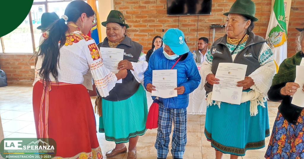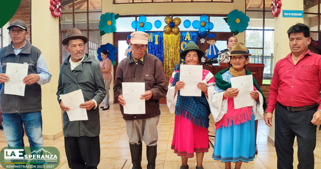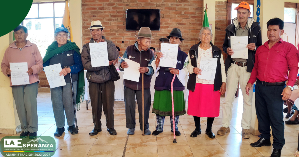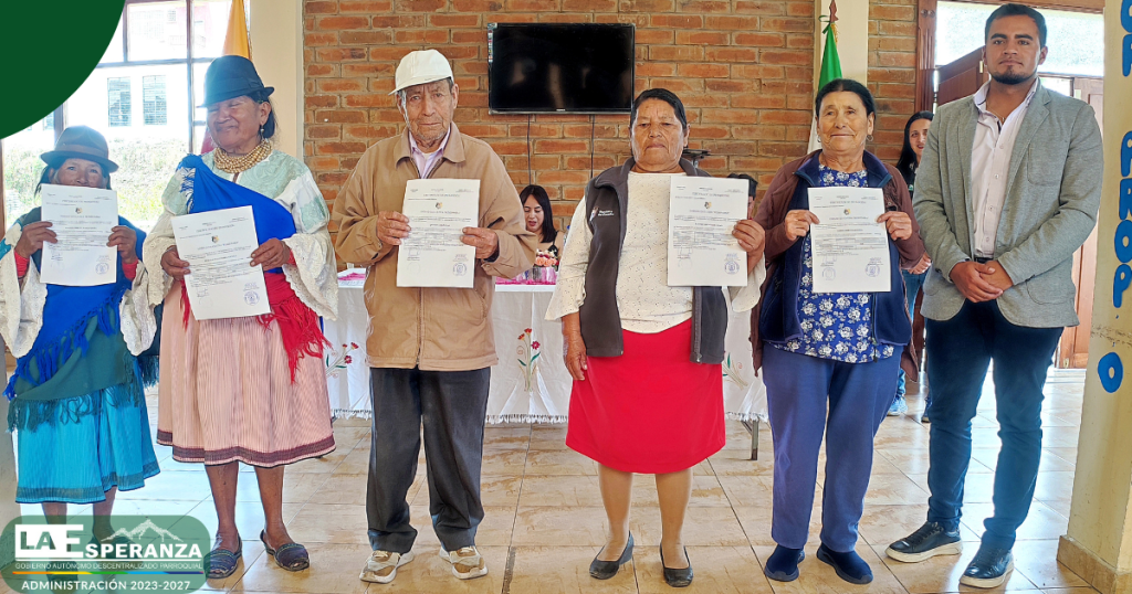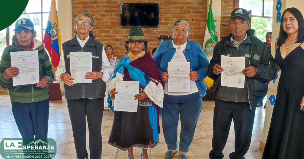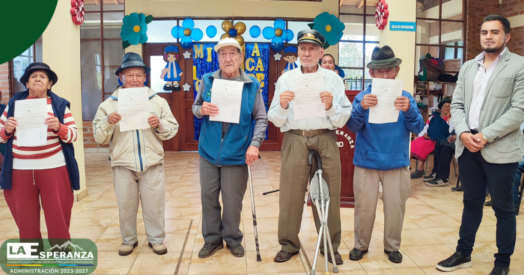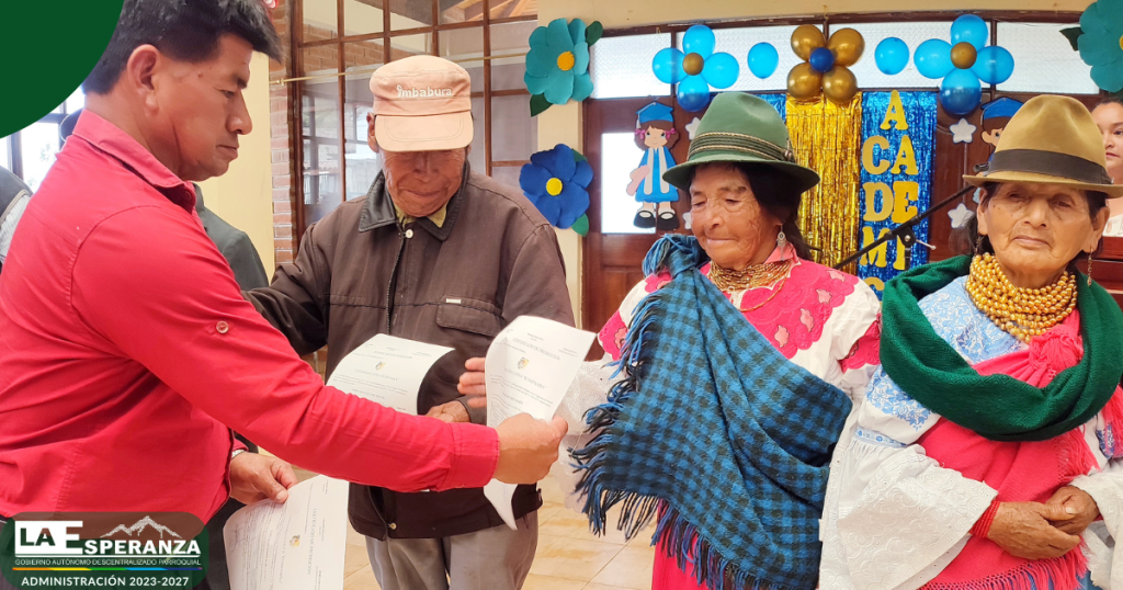 En el marco del trabajo interinstitucional entre el GAD Parroquial La Esperanza y la Unidad Educativa Rumipamba, se entregaron certificados de promoción a los usuarios del Centro Integral del Adulto Mayor, quienes culminaron de manera satisfactoria el segundo y tercer año de Educación General Básica Elemental.