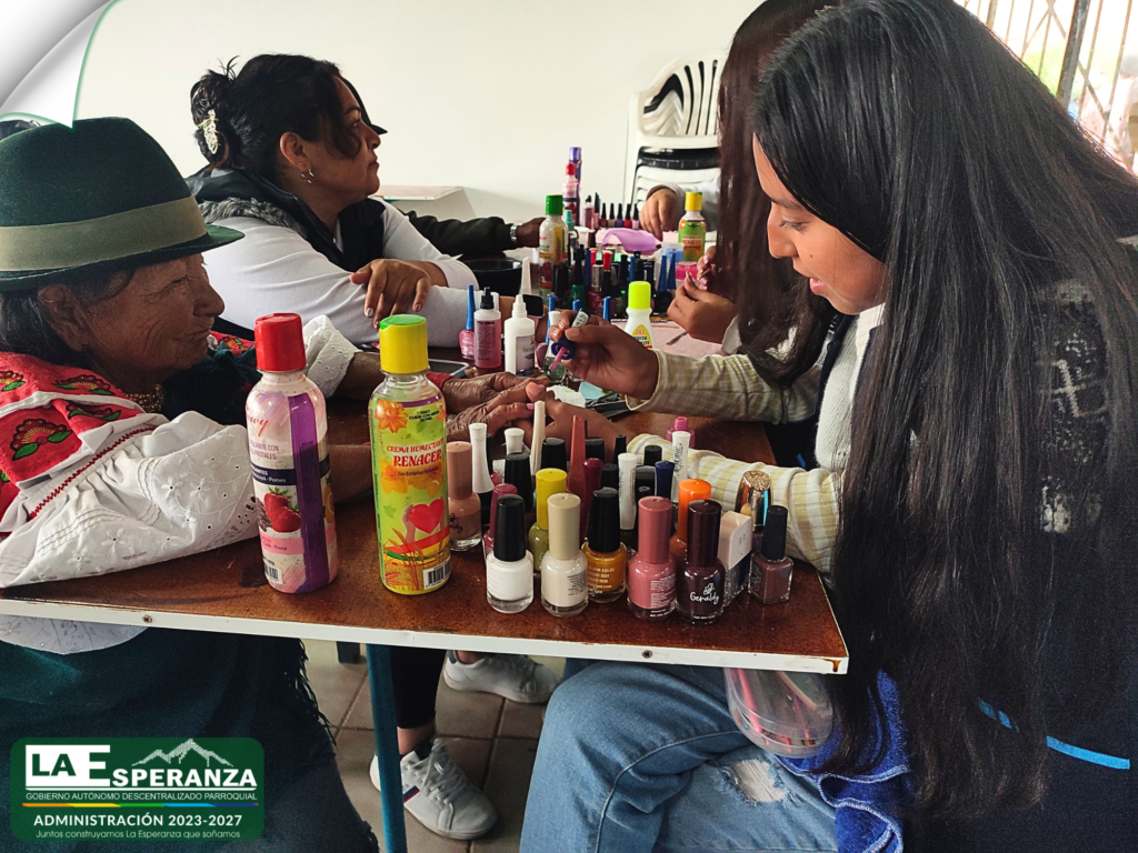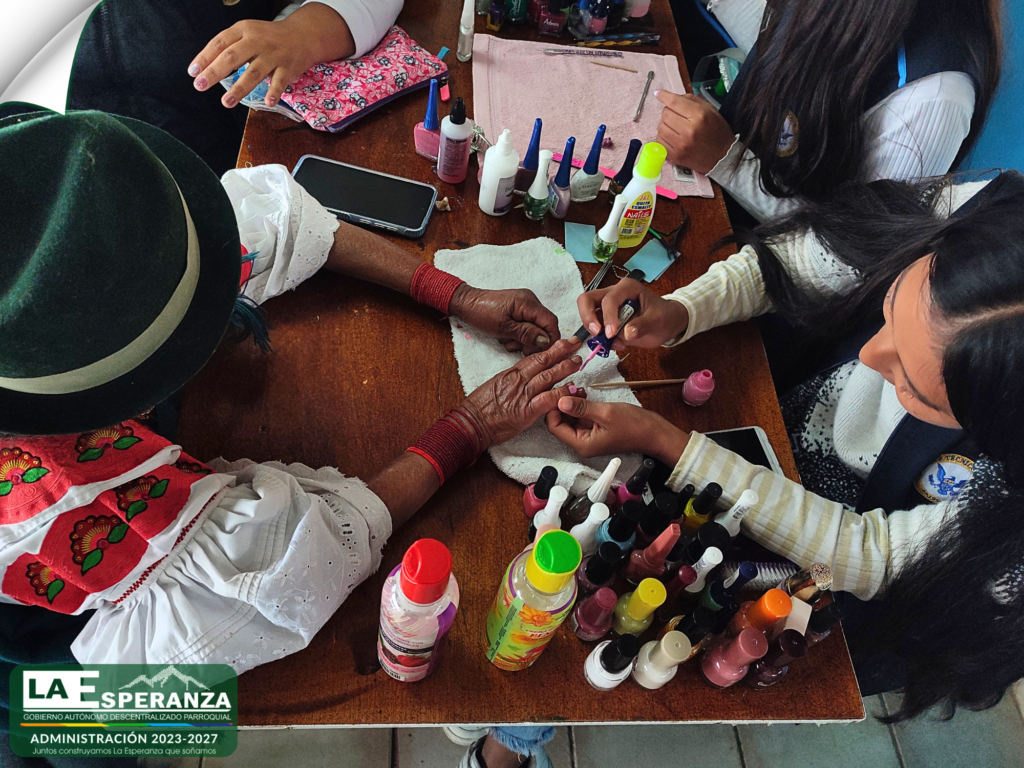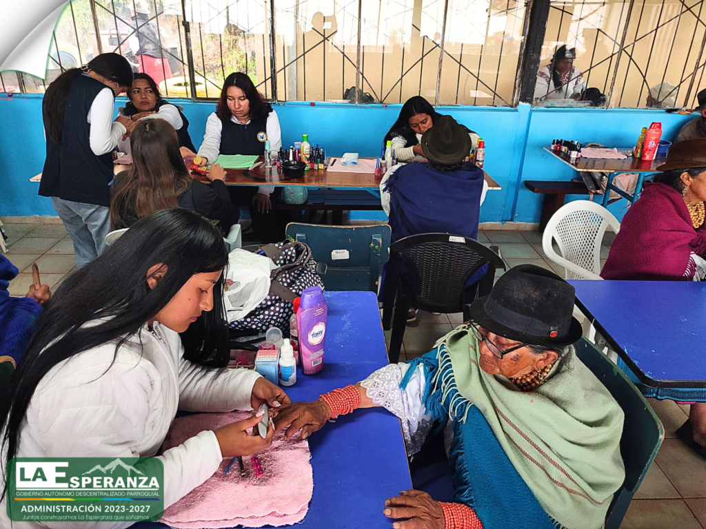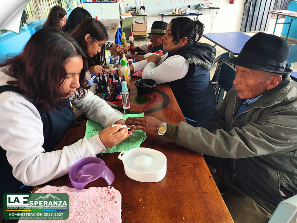 En cooperación interinstitucional con el Instituto Técnico Imbabura, se desarrolló una jornada de atención dirigida a adultos mayores de la comunidad de Paniquindra, brindando servicios de corte de cabello y manicure.